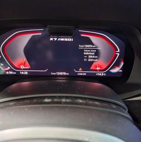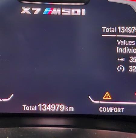 Cu TVA: 64,402 €Echipamente optionale incluse: Scaune fata confort, reglabile electric, ventilate, cu masaj; Sistem de incalzire auxiliar; Carlig de tractare actionat electric; Sistem entertainment Professional pentru locurile spate; BMW Night Vision; Geamuri fumurii spate; Scaune incalzite fata/spate; Asistent Parcare Plus; Pedalier specific M; Faruri BMW Laserlight; Telecomanda specifica M; Driving Assistant Professional; Ornamente "CraftedClarity"; Functie TV Plus; Pachet depozitare in portbagaj; Trapa panoramica Sky Lounge; Suport pahare Cu temperatura controlata; Aer conditionat automat, 5 zone; Pachet Heat confort fata; Jante aliaj BMW Individual Y-spoke 22"; BMW Drive Recorder; Frane M Sport, negru lucios; Ornamente M Shadow Line cu continut extins;