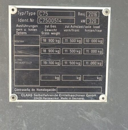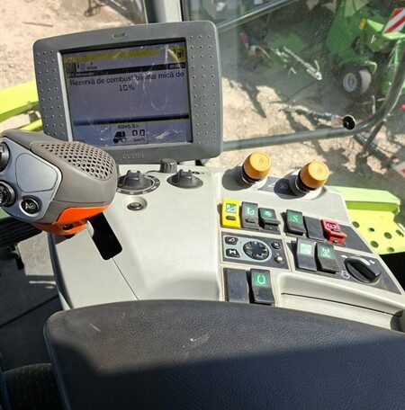 Cu TVA: 115,488 €Combina autopropulsata clasa 8, putere motor nominala 320 kW (435 CP), motor Mercedes Benz OM470 LA 6 cilindri diesel Tier 4 Final cu SCR AdBlue, rezervor combustibil 800 litri standard, rezervor AdBlue 83 litri, sistem racire DYNAMIC COOLING, transmisie hidrostatica cu variator trepte de putere (hydrostatic power shift), viteza maxima transport 25-30 km/h, directie hidraulica pe roata spate articulata, anvelope fata/spate, sistem treier APS HYBRID SYSTEM (APS tangential + ROTO PLUS dual rotor), tambur APS cu preaccelerator, doi rotori ROTO PLUS contrarotatori cu diametru 445 mm si lungime 4,20 m/bucata, viteza rotori 450- 1250 rpm, suprafata de separare reglabila hidraulic prin ecluzele HOTKEY din cabina, 5 scuturatoare (walkers) pentru separare suplimentara, sistem curatire JET STREAM cu ventilatoare turbina, sita superioara si inferioara cu reglaj electric, sita inclinata (returns pan), capacitate buncăr boabe 10000 litri (extensibil la 13500 litri), tub descarcare buncăr 3XL cu rotire 180 grade, viteza descarcare 2XL, capcana pietre (stone trap) standard, tocator paie (straw chopper) standard cu contra-lame si reglaj manual al lamelor de frictiune, raspanditor pleava (chaff spreader) standard, raspanditor radial SPECIAL CUT optional, sistem AUTO CONTOUR pentru urmarire automata relief teren, sistem AUTO PILOT pentru conducere autonoma pe camp, sistem CEMOS (CEMOS AUTO THRESHING, AUTO SEPARATION, CRUISE PILOT) pentru optimizare automata parametri de lucru, terminal CEBIS in cabina cu control complet, masurare pierderi, masurare umiditate boabe, masurare debit (QUANTIMETER), cabina cu aer conditionat, scaun cu suspensie pneumatica, iluminat LED de lucru Plus, camera video spate cu afisaj pe terminal, sistem CMOTION maner multifunctional, tambur masa de taiere cu reversare hidraulica etc