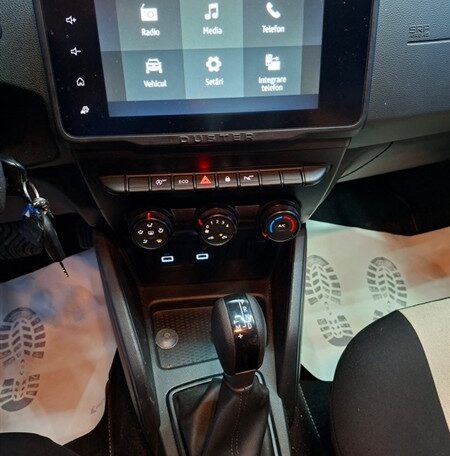 Jante aliaj 17 inch, bare longitudinale pavilion negre, oglinzi retrovizoare exterioare cu reglaj electric si dezabrurire, faruri fata LED cu aprindere automata, proiectoare ceata fata, senzori parcare spate acustici, volan multifunctional imbracata in piele sintetica reglabil pe inaltime si adancime cu comenzi audio si telefon, bord analogic cu computer de bord, ecran tactil Media Display 8 inch, radio DAB, conectivitate Bluetooth, integrare telefon Android Auto si Apple CarPlay, 4 boxe audio, geamuri electrice fata si spate, climatizare manuala A/C, cutie de viteze automata EDC 6 trepte, tractiune 2WD, frana de mana manuala, bancheta spate rabatabila 1/3 2/3, ISOFIX locuri laterale spate, inchidere centralizata cu telecomanda 2 butoane, tapiterie textil negru, sistem Start/Stop, mod ECO, airbaguri frontale si laterale captorace sofer si pasager fata, airbaguri cortina spate, ABS, ESP, HSA (asistenta pornire rampa), franare autonoma urgenta cu detectie pietoni si biciclisti (AEBS), asistenta mentinere banda de rulare (LKA), limitator viteza, Cruise Control, sistem monitorizare presiune pneuri (TPMS), etc