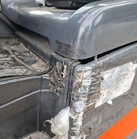 Prezinta multiple zgarieturi ale caroseriei, Furtunul de la cilindrul de translatie desfacut.