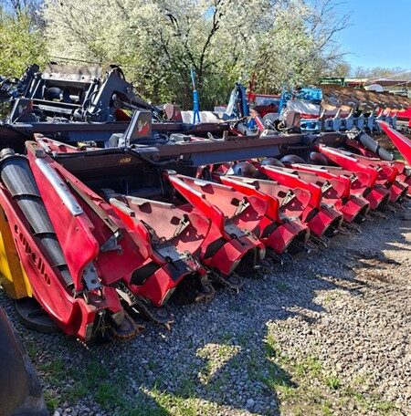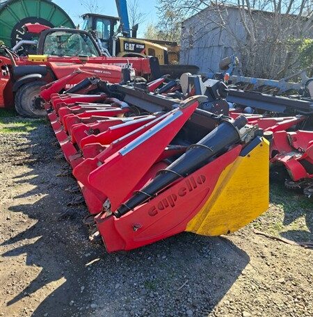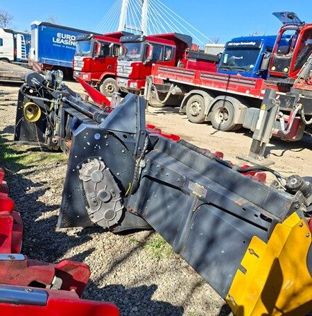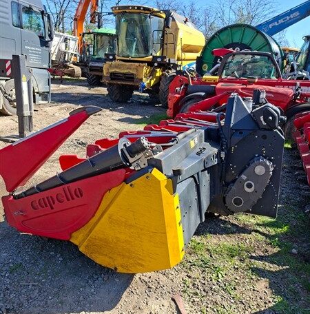 Cu TVA: 22,854 €Heder (culegator de porumb) cu cadru pliabil hidraulic (flip-up), numar randuri 8, distanta intre randuri 75 cm, latime de lucru aprox. 6,00 metri, latime transport redusa prin pliere hidraulica, greutate aprox. 3350 kg, compatibil combine Claas Lexion si Tucano cu senzori Auto Contour si multiconector, coifuri (hoods) si ciocuri (snouts) din technopolymer rezistent la uzura si coroziune, coifuri complet rabatabile si reglabile fara scule, reglaj continuu al unghiului ciocului prin maneta cu blocare prin surub, sistem horizontal de tocare tulpini Capello integrat in carcasa de fonta a cutiei de viteze, tocatoare de tulpini rotative angajabile/dezangajabile printr-o maneta, 2 perechi de rupatori de cioturi (stubble breakers) pentru protectia anvelopelor, valtzuri de culegere cu profil de crestatura pentru angajare completa a tulpinilor, reglaj hidraulic al valtzurilor de culegere (stalk rolls), melci de transport porumb orizontali pe ambele parti (pentru porumb cazut), cutie de viteze cu limitator de cuplu in baie de ulei (oil bath torque limiter) integrat, cadru modular usor de intretinut, acoperire anticoroziva prin vopsire in camp electrostatic conform standardelor ISO, optional kit conversie floarea soarelui disponibil in cateva minute, senzori de urmarire sol Auto Contour, multiconector hidraulic si electric (multicoupler)pentru conectare rapida la combina, prindere tip Claas standard etc