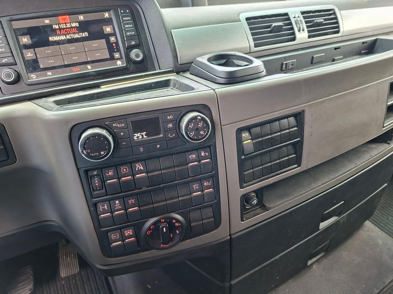 Cabina XXL, Sistem climatizare, Airbag-uri, ABS, ASR, Computer de bord, Pilot automat, Geamuri electrice, Oglinzi electrice, Scaune controlate electric si pneumatic, Comenzi audio si tempomat pe volan, Tahograf digital, Doua paturi, Control climatizare din pat, Frigider, 2 rezervoare, Sistem climatizare in trapa; Faruri halogen; Transmisie automata, Retarder/ Intarder