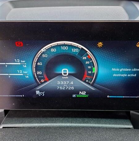 Cu TVA: 36,196 €Sistem climatizare, Airbag, ABS, ASR, Computer de bord, Pilot automat, Oglinzi retrovizoare digitale reglabile electric, Volan multifinctional cu comenzi audio si bord computer, instrumentar de bord digital, Tahograf digital, Sistem multimedia mp3 si GPS cu touchscreen, Cabina dormit cu 2 paturi, Scaune pneumatice reglabile, Frigider, Trapa in plafon, statie emisie-receptie, 1 rezervor, Transmisie automata, Retarder/Intarder