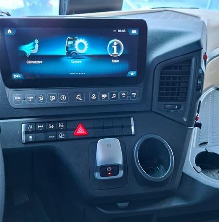 computer, instrumentar de bord digital, Tahograf digital, Sistem multimedia mp3 si GPS cu touchscreen, Cabina dormit cu 2 paturi, Scaune pneumatice reglabile, Frigider, Trapa in plafon, statie emisie-receptie, 1 rezervor, Transmisie automata, Retarder/Intarder