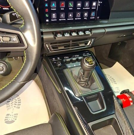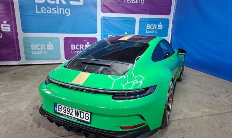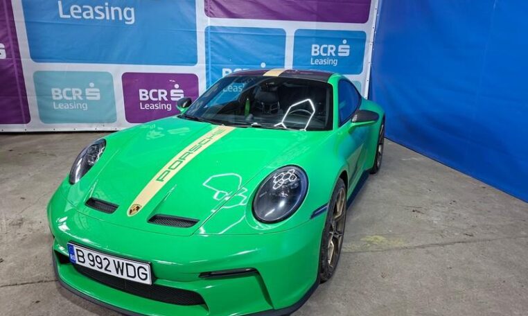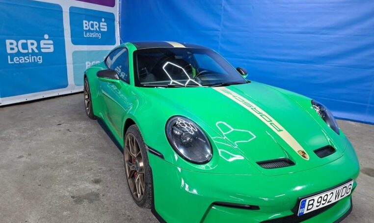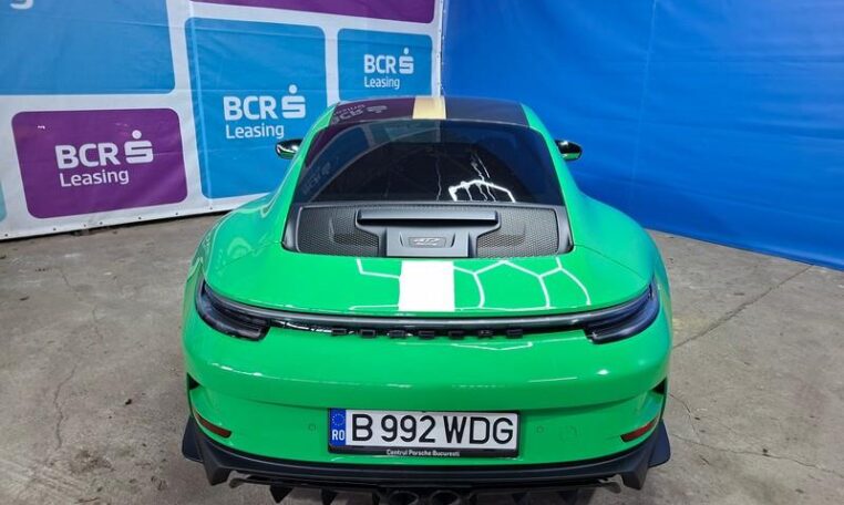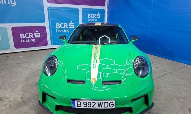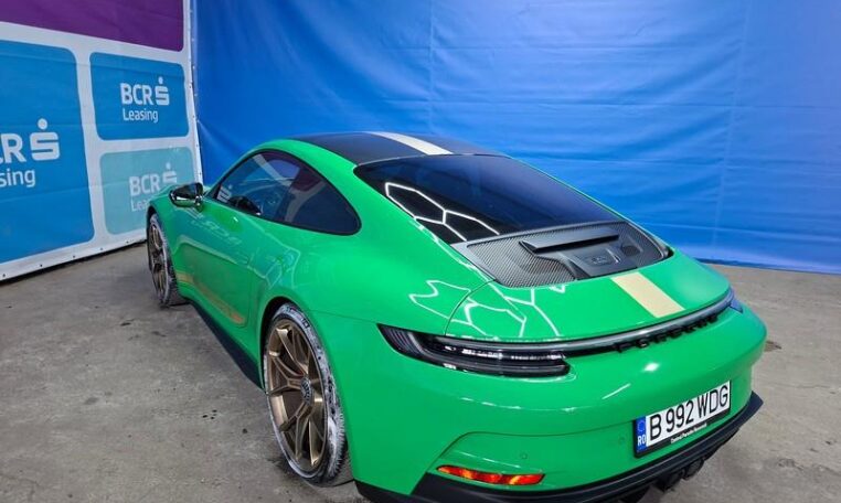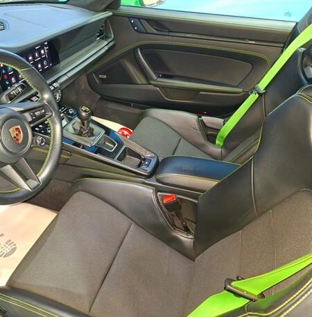 Cutie de viteze manuala 6 trepte GT, Diferential mecanic PTV Porsche Torque Vectoring, Suspensie PASM ajustabila sport, Scaune bucket carbon foldable, Jante forged aurii 20 inch fata 21 inch spate, Culoare exterioara verde deschis PTS, Centuri de siguranta 4 puncte verzi, Extintor de incendiu sport, Tablou de bord GT3 digital cu rev counter, Volan GT3 Race-Tex cu mode selector, Pedale aluminiu sport, Interior negru Race-Tex Alcantara, Faruri LED Matrix, Placa praguri GT3 iluminata, Spoiler retractabil Touring, Anvelope Michelin Pilot Sport Cup 2, Sistem evacuare sport stainless, Auto start-stop, VarioCam variabila, Injectie directa DFI, Ambreiaj twin-plate dry sump, Folie protectie PPF pe toata caroseria.