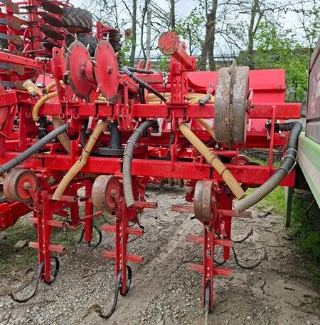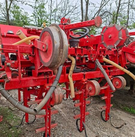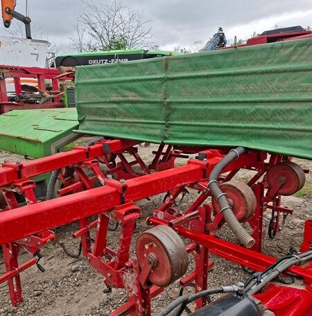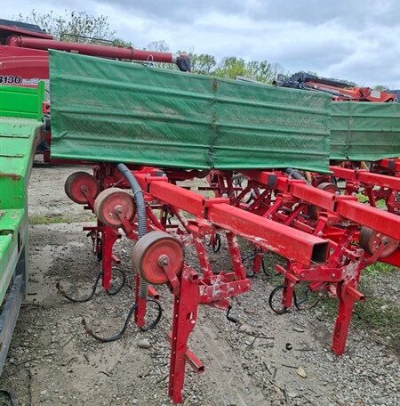 Cu TVA: 5,617 €Prasitoare cu cadru rabatabil hidraulic pentru culturi prasitoare (porumb, floarea soarelui, soia, sfecla de zahar), numar randuri: 8, distanta intre randuri: 70 cm, latime de lucru: 5,60 m, latime transport: 2,50 m, atasare tractor in 3 puncte categoria II, element prasitor cu paralelogram dublu cu arc de pretensionare si sistem Superflow, configuratie element: 5 arcuri cu 2 protectii tabla (5MP), fertilizator cu bazin metalic capacitate 950 litri, transport pneumatic ingrasaminte randuri exterioare, sistem Speedy-Set pentru reglare rapida a elementelor, roti portante pentru reglarea adancimii de lucru, roata dubla de transmisie pe lagare cu bile, eliberare ramificatie exterioara standard, cardan 1"3/8 Z6-Z6, instalatie de semnalizare rutiera, protectii transport stradal, necesita minim 2 distributori hidraulici tractor etc