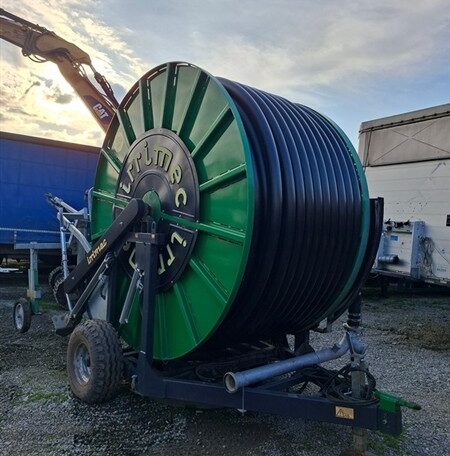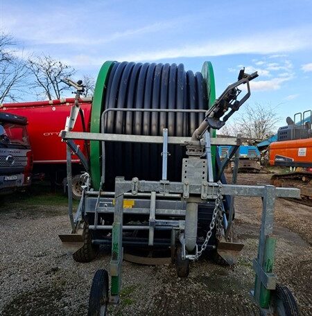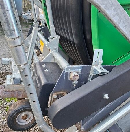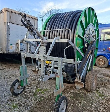 Turbină, sistem brevetat "Turbimec", pentru debite de la 25 la 130 m³/h; Model cuplatformă suport galvanizată la cald, oferind posibilitatea rotirii la 360°; de 6 viteze de înfășurare; Furtun din polietilenă PE 110; Furtun de alimentare de 4 m, din cauciucranforsat, complet cu cuple; Kit hidraulic de ridicare a căruțului cu aspersor, pentru acționarea picioarelor de stabilizare, pentru rotirea tamburului, pentru ridicarea roților - acționat de sistemul tractorului; Căruț cu 3 roți, simetric, corp fix cu greutăți; Aspersor model „Reflex” cu duze de 26-30-32; 2 roți 11.5-80/15.3 14 PR; Măsurătorde presiune în baie de glicerină și robinet de aerisire; Sistem pentru înfășurarea manuală a furtunului